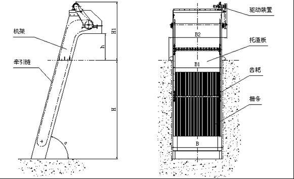 必备:渠道的宽度(或者设备的宽度)B、渠道的深度H、格栅栅隙b、耙齿材质要求、机架材质要求。